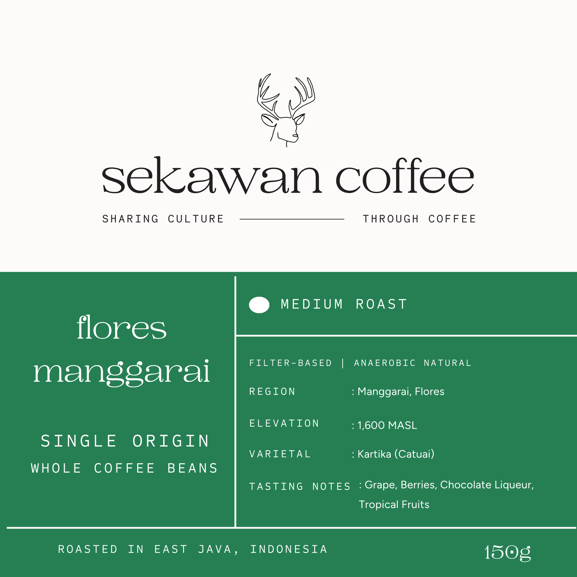 Discover our Flores Manggarai single origin whole coffee beans from the Manggarai region of Flores, Indonesia. Filter-based and anaerob natural processed, these beans are great for pour-over coffee made with V60, Chemex, French Press, Aeropress, etc.